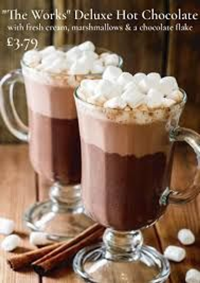 Introducing our heavenly hot chocolate mix that comes with all the works - creamy and velvety cocoa powder, fluffy marshmallows and rich, whipped cream to take your hot chocolate experience to a whole new level. Our mix is perfect for indulging on cold winter nights, as an excellent after-dinner treat or even as a comforting remedy on a bad day. The possibilities are endless with our hot chocolate mix - simply add milk or water and enjoy the ultimate cocoa experience. Bring your cozy moments to life with our irresistible hot chocolate mix!
